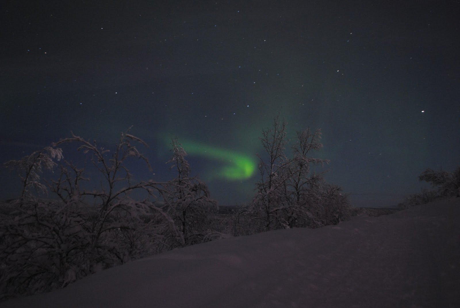 最後の夜にやっと観測することのできた、奇跡的且つ神秘的なオーロラ。今までに味わったことのないような、とっても穏やかなひとときを楽しむことができました。